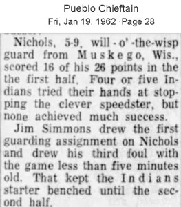 After playing at Otero Junior College in LaJunta, Colo., Nichols played on the first three Southern Colorado State College (now Colorado State University Pueblo) men's basketball teams (1963-1966) and scored 590 points in 76 games.
